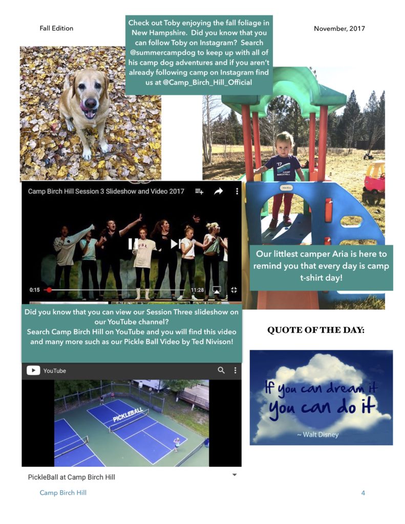 Enjoy reading whats new at Camp Birch Hill!