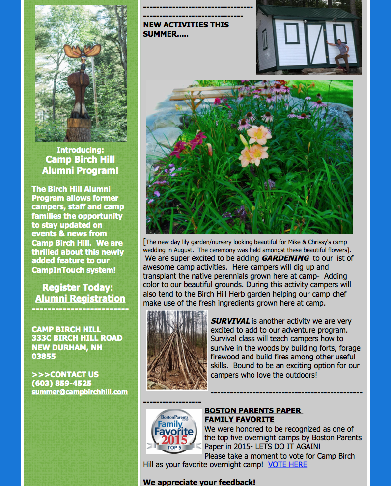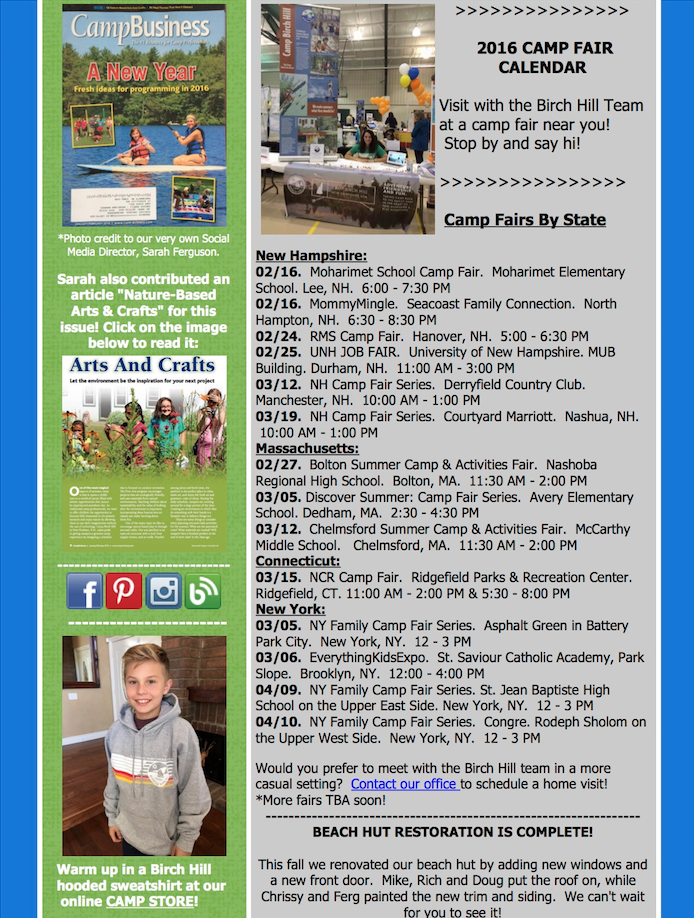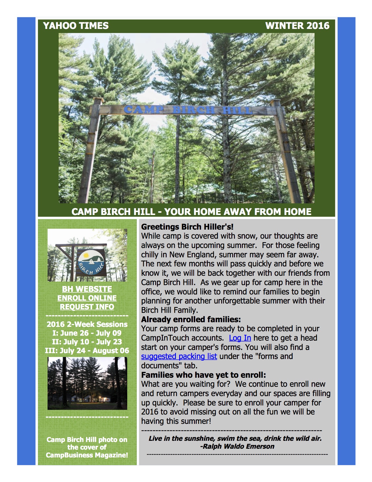 Thank you for reading this edition of the Camp Birch Hill Yahoo Times – Winter 2016. To view the newsletter URL with links: CLICK HERE.